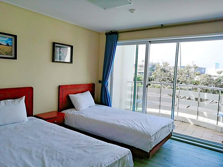 Room options cover a broad spectrum, from Standard Rooms and Twin Rooms to various Double/Family configurations, with some layouts offering ocean, partial sea, or mountain views. Each room features extras like extra-long beds, free toiletries, balconies, soundproofing, and a picnic area in select layouts. With a laid-back, budget-friendly vibe and a 2-star rating, this Jeju escape keeps the focus on simple pleasures and coastal downtime.